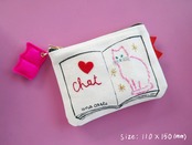 帆布に手描き&手刺繍を施した、手作り感満載のこのポーチは、普段使いにはもちろん、猫好きな方へのプレゼントとしても最適です。